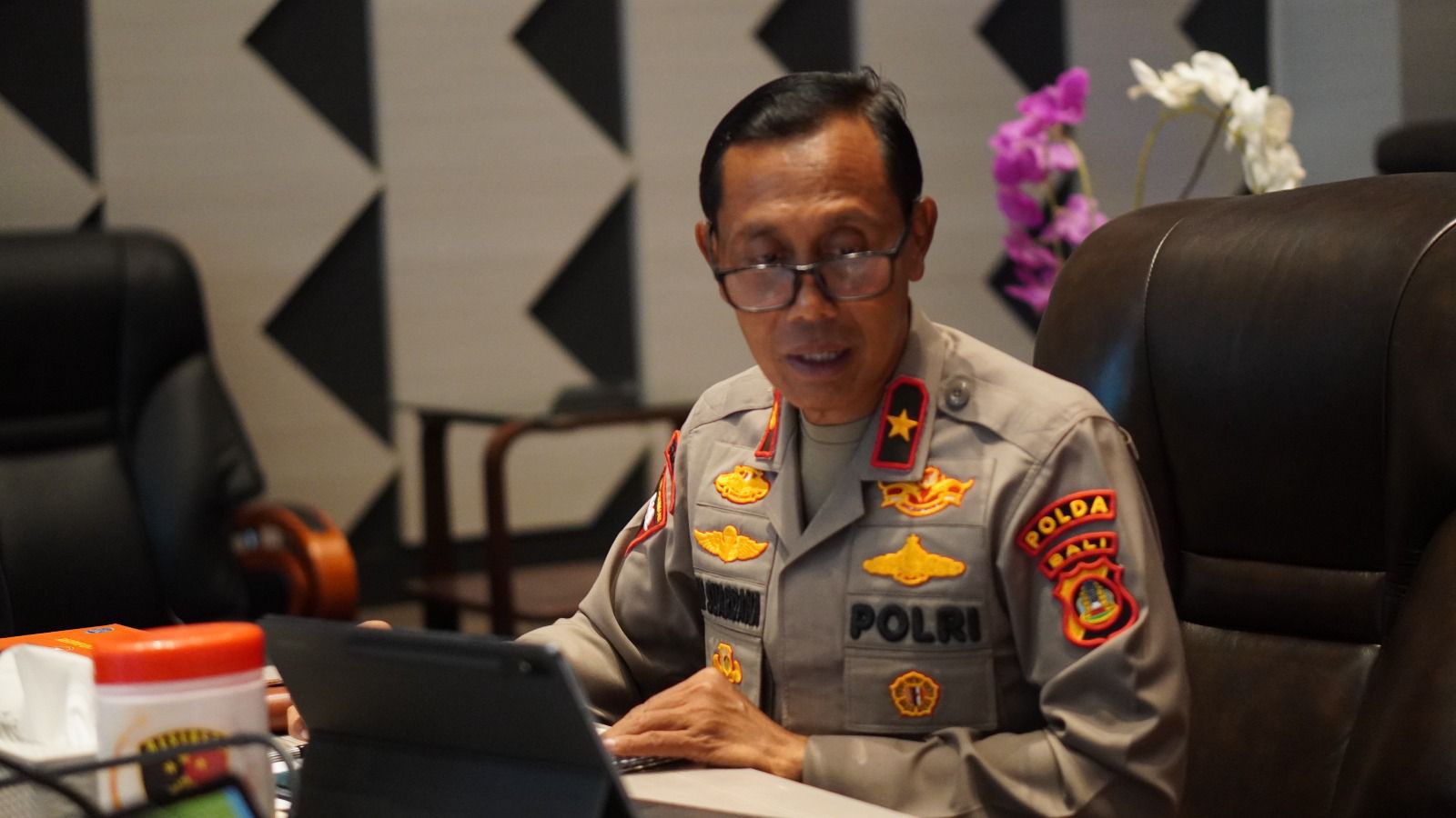BALI – DETEKSIPOST.COM – Wakapolda Bali Brigjen Pol. Drs. I Ketut Suardana, M.Si mengikuti Rakor Situasi Keamanan dan Ketertiban Provinsi Bali dalam Konteks Kegiatan Warga Negara Asing (WNA) melalui Virtual Meeting di Command Center Polda Bali. Kamis (2-3-2023).