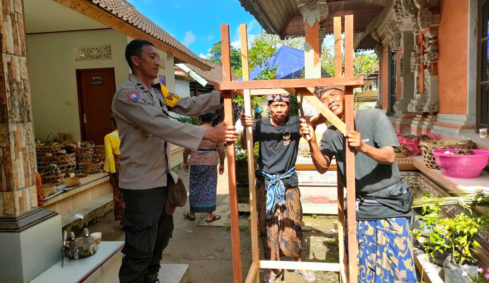 Bhabinkamtibmas Gotong Royong Siapkan Sarana Upacara Ngaben Bersama Warga