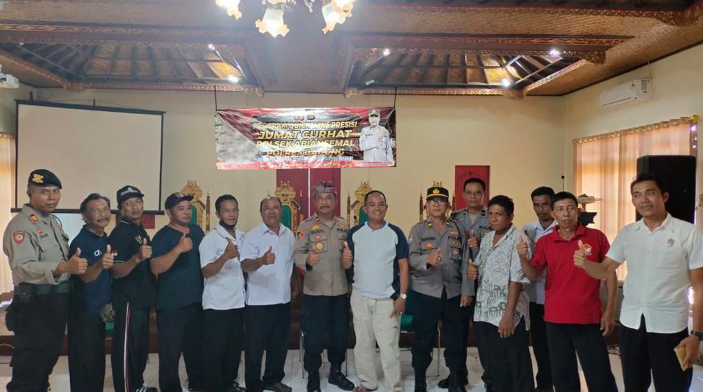 Kapolsek Abiansemal Kompol I Gusti Made Sudarma Putra, S.Sos., S.H., M.A.P., seijin Kapolres Badung, menjelaskan kegiatan Jumat Curhat ini bertujuan untuk mendengarkan langsung keluhan masyarakat, terkait situasi Kamtibmas agar tetap terjaga dengan aman, damai dan kondusif.