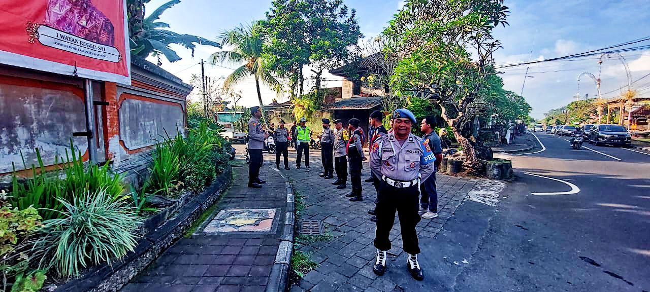 Kegiatan diawali dengan pelaksanaan apel konsolidasi di depan Balai Banjar Lebah Pangkung, Desa Mengwi dengan melibatkan 18 personil Polres Badung dan Polsek Mengwi.