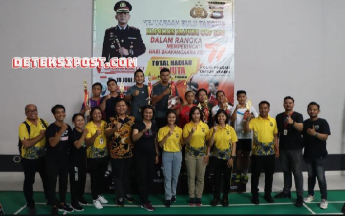 BALI – DETEKSIPOST.CLM – Polda Bali. Polres Badung Kejuaraan Bulu Tangkis Kapolres Cup 2023 yang di selenggarakan Polres Badung dalam rangka Hari Bhayangkara Ke 77, telah di berakhir pada hari Jumat. (16/6/2023) malam pukul 19.30 wita di GOR Aura Badminton Hall, Jalan Made Bulet Desa Dalung Kecamatan Kuta Utara Kabupaten Badung, Bali. Dengan penyerahan hadiah oleh Wakapolda Bali Brigjen Pol. Drs. I Ketut Suardana, M.Si. didampingi Kapolres Badung AKBP Teguh Priyo Wasono, SIK dan Wakapolres Kompol Putu Diah Kurniawandari, SH, SIK, MH.