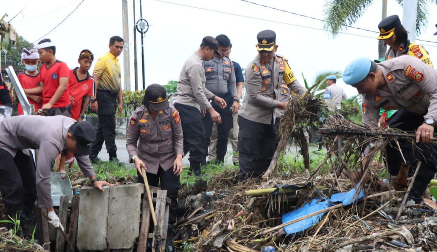 Kapolres Badung didampingi Wakapoles Kompol Putu Diah Kurniawandari, SH, SIK, MH mengatakan di wilayah Polres Badung beberapa hari terakhir ini hujan terus mengguyur. Dan ada beberapa titik rawan banjir dan tanah longsor seperti di wilayah Sobangan beberapa hari yang lalu sudah kita bersihkan baik gotnya yang mempat maupun tanahnya yang menutupi setengah badan jalan. Hari ini, pihaknya bersama masyarakat, Dinas Lingkungan Hidup dan Kebersihan (DLHK) Badung dan anak-anak sekolah membersihkan sampah.