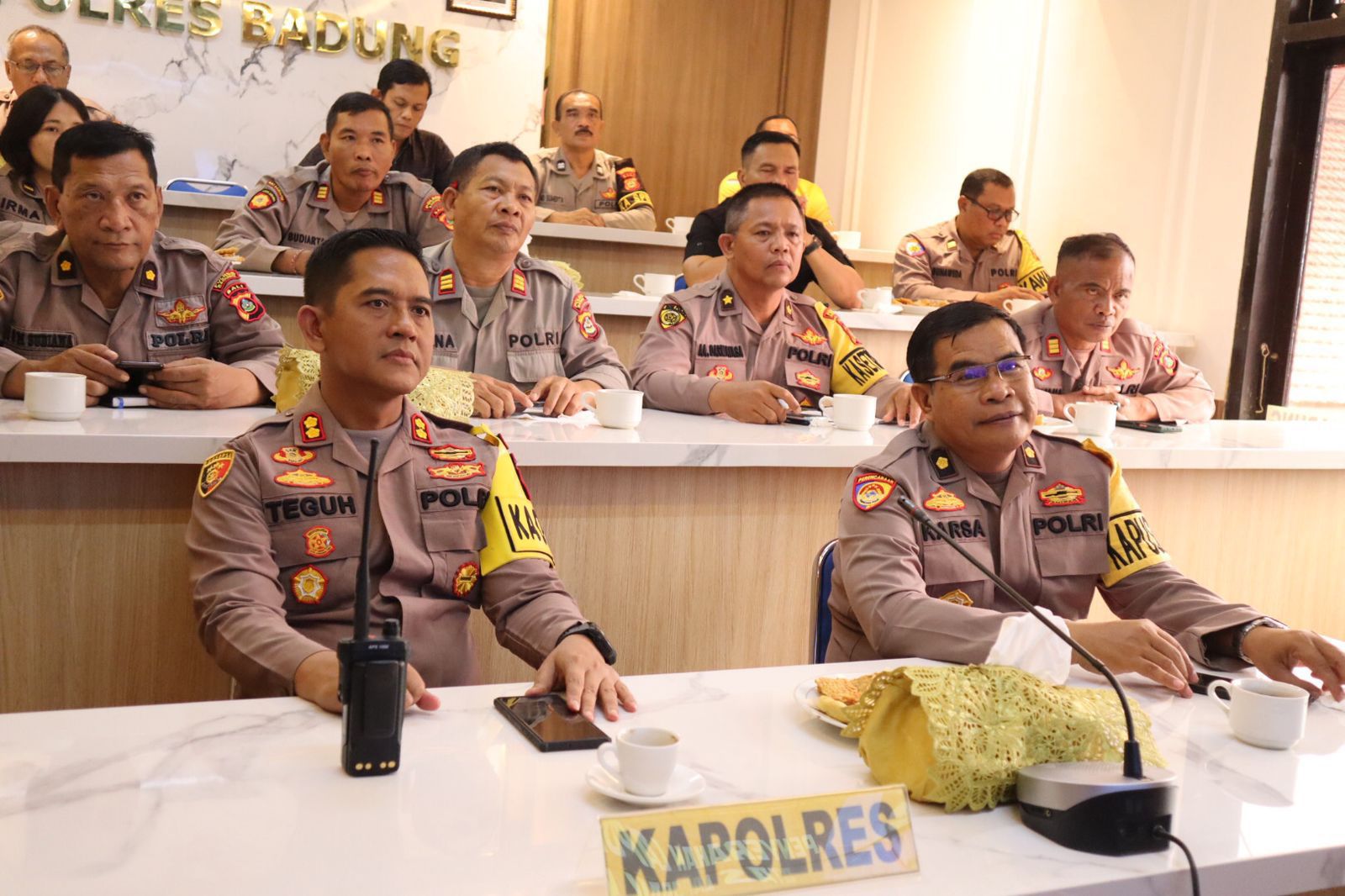 BALI – DETEKSIPOST.COM – Polda Bali, Polres Badung. Kepala Kepolisian Resor Badung AKBP Teguh Priyo Wasono, S.I.K. didampingi seluruh PJU mengikuti kegiatan zoom meeting dalam rangka Penyerahan Laporan Hasil Pemeriksaan BPK RI atas Laporan Keuangan Polri T.A 2022 di ruang Command Center Jl. Kebo Iwa No. 1 Mengwitani Kecamatan Mengwi Kabupaten Badung, Bali. Jumat (14/07) siang pukul 11.50 Wita.