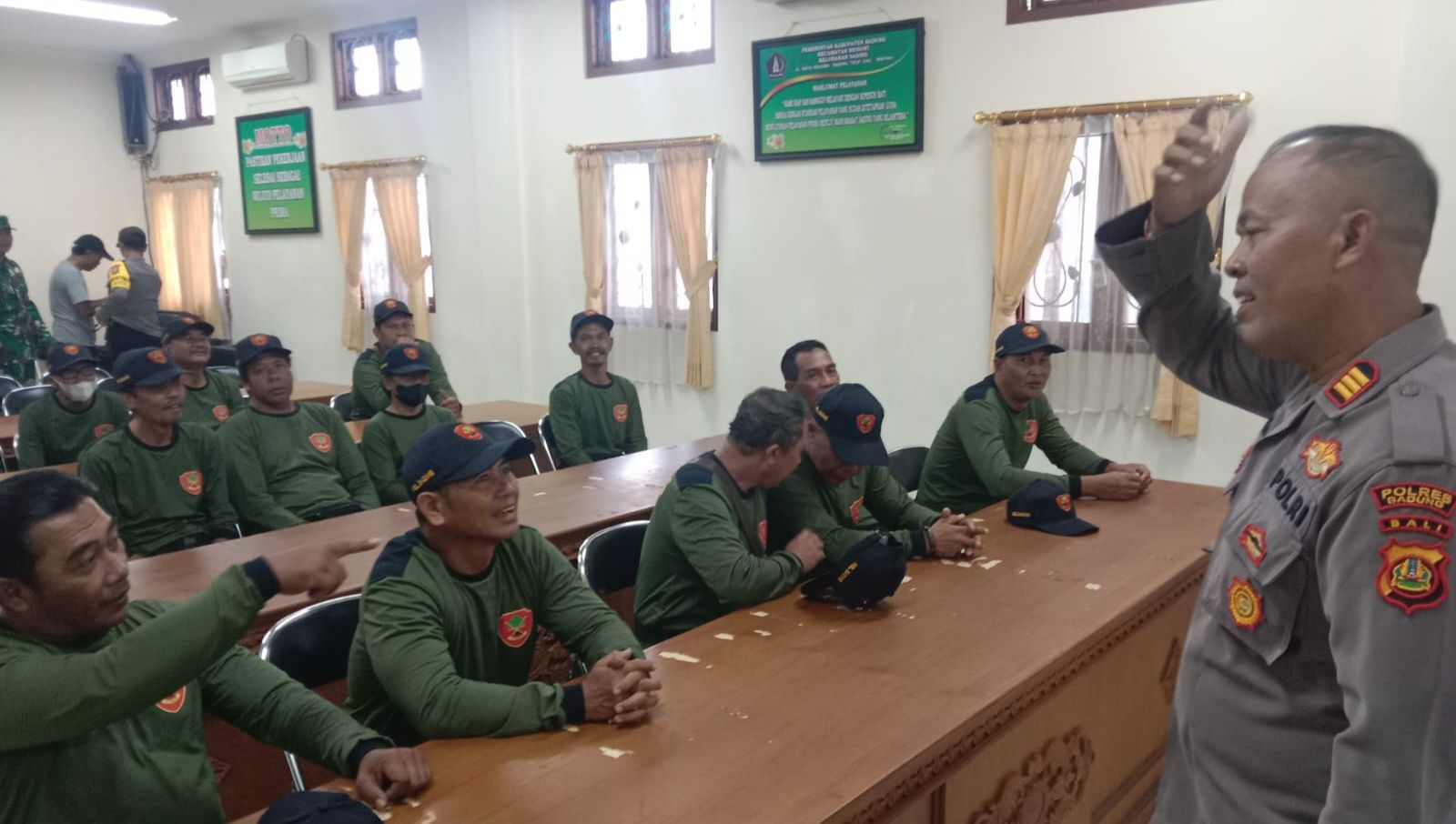 Foto; Jaga Kamtibmas Jelang Pemilu 2024 Polsek Mengwi Jumat Curhat Dengan Anggota Linmas.