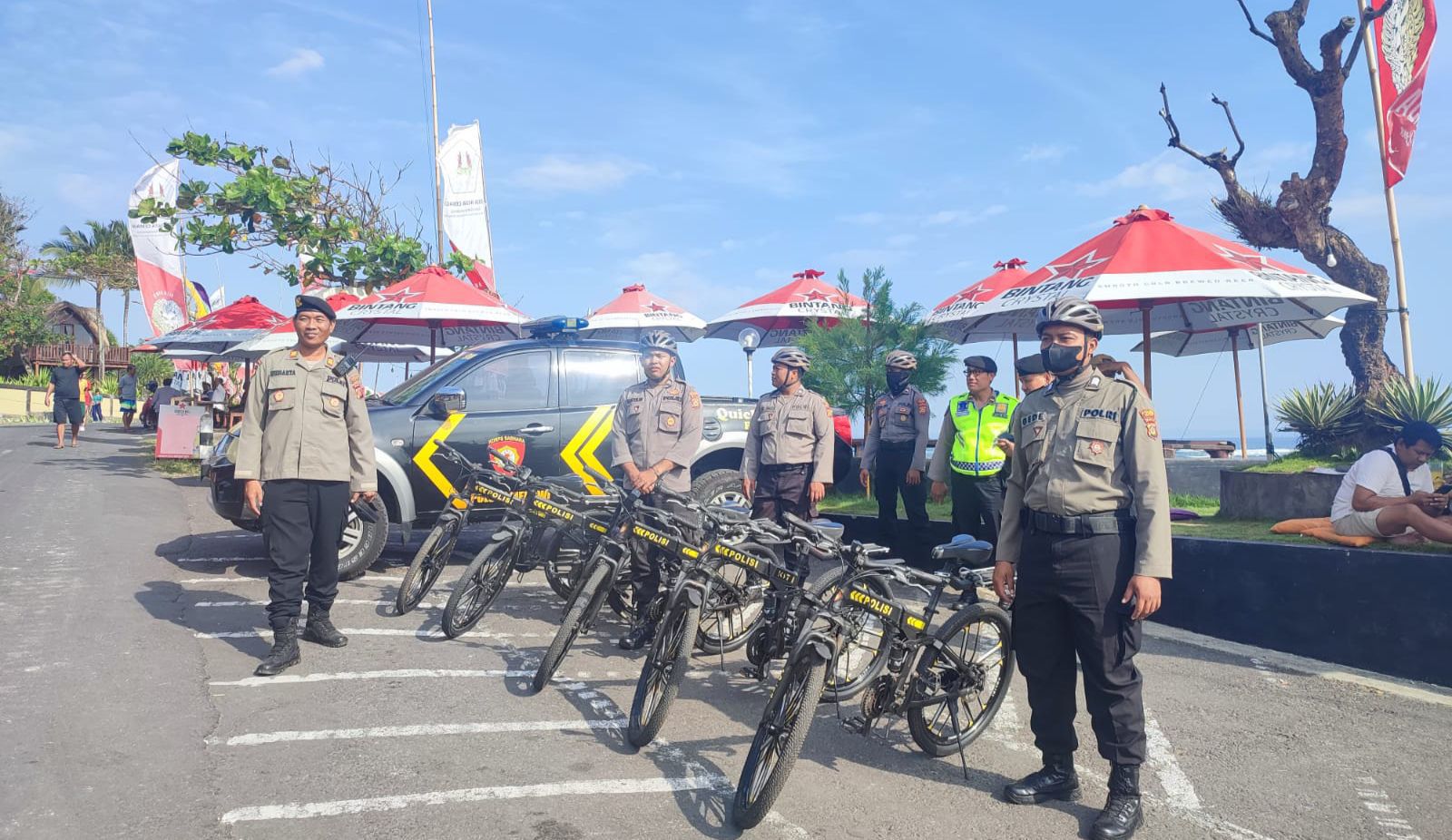 Foto; Berikan Rasa Aman Wisatawan Polres Badung Laksanakan Patroli Bersepeda.