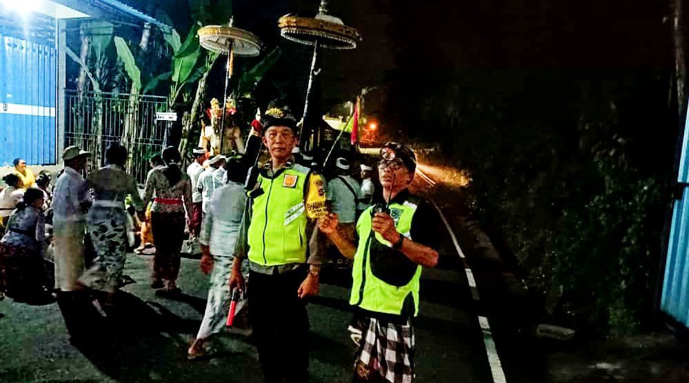 Dalam kegiatan pengamanan tersebut Bhabinkamtibmas bersama Polisi Banjar Dangin Bingin Aipda I Made Yudiantara, S.H berkolaborasi dengan Pecalang banjar Adat Sembung Sobangan