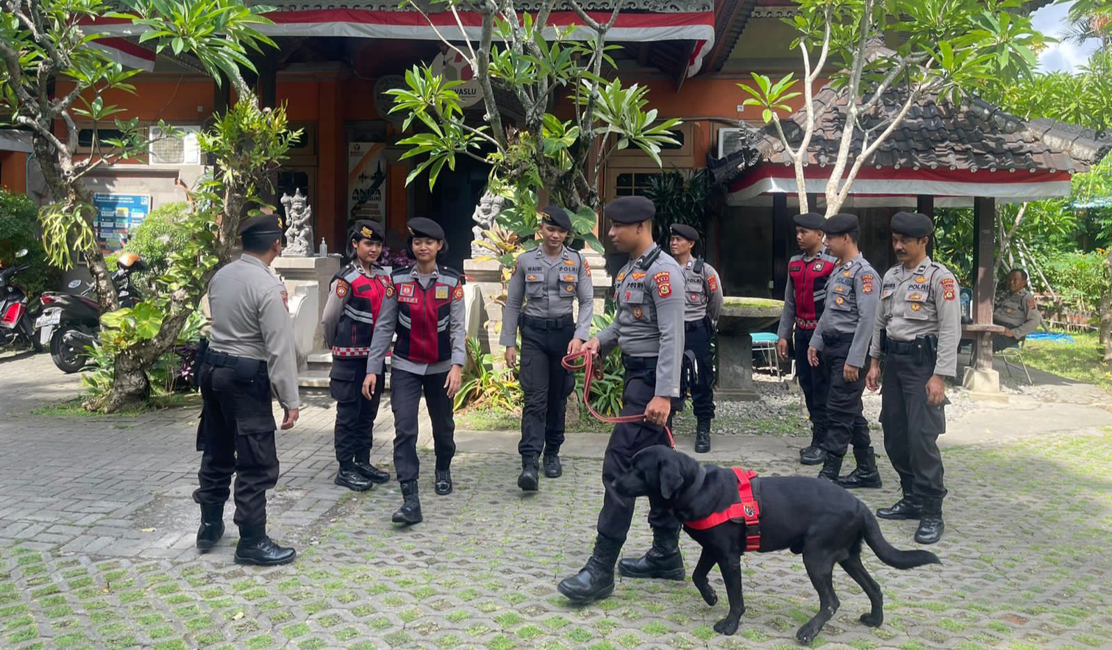 BALI – DETEKSIPOST.COM – Polda Bali yang tergabung dalam operasi Mantap Brata Agung 2023 Unit Satwa (K9) dari satgas 2 Preventif untuk melakukan patroli dan sterilisasi di gedung Bawaslu Provinsi Bali, Jumat (1/12/2023).