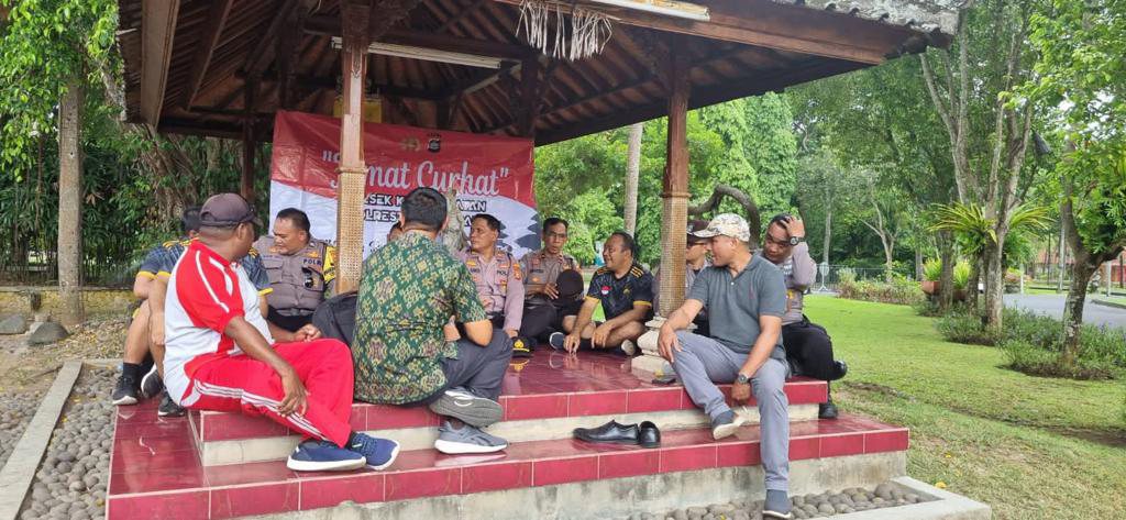 BALI – DETEKSIPOST.COM – Polsek Kuta Selatan-Polresta Denpasar, menggelar program Jumat Curhat di lapangan parkir komplek ITDC Nusa Dua, Kuta Selatan, Jumat (01/12). Program ini juga menjadi ajang simakrama dan komunikasi antara Polri dengan masyarakat.