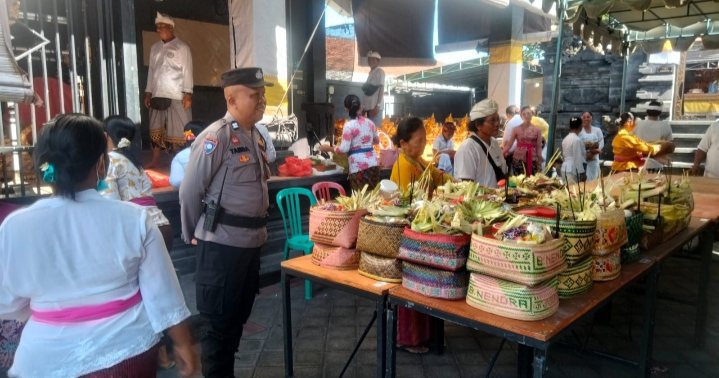 BALI – DETEKSIPOST.COM – Denpasar – Bertepatan dengan dilaksanakannya kegiatan Upacara Adat Nangluk Merana Tilem Ke Enem (Upacara Dewa Yadnya) di Pura Dalem Khayangan Umadui jalan Gunung Soputan Denpasar, Bhabinkamtibmas Desa Padangsambian Klod Polsek Denpasar Barat Aiptu I Made Tamba Yasa menyambangi lokasi kegiatan, Selasa (12/12/2023) pagi.