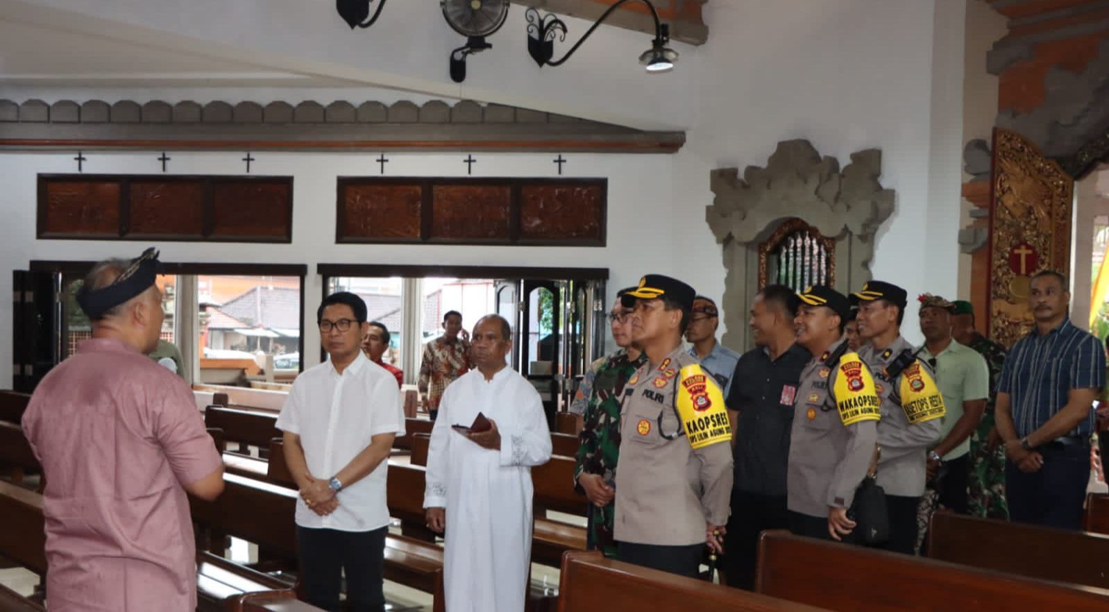 BALI – DETEKSIPOST.COM – Mangupura, Kepala Kepolisian Resor Badung AKBP Teguh Priyo Wasono, SIK bersama Forkopimda Kabupaten Badung melakukan pemantauan perayaan ibadah malam Natal di Gereja-Gereja diwilayah Kabupaten Bali. Sejumlah titik tempat ibadah yang dipantau antara lain Gereja Katolik Tangeb, Gereja GKPB Buduk, Gereja Katolik Jl. Kartika Plaza Kuta dan Gereja GPIB Eklesia Tuban (Depan Patung Kuda) Minggu, (24/12/2023) sore 18.00 WITA.