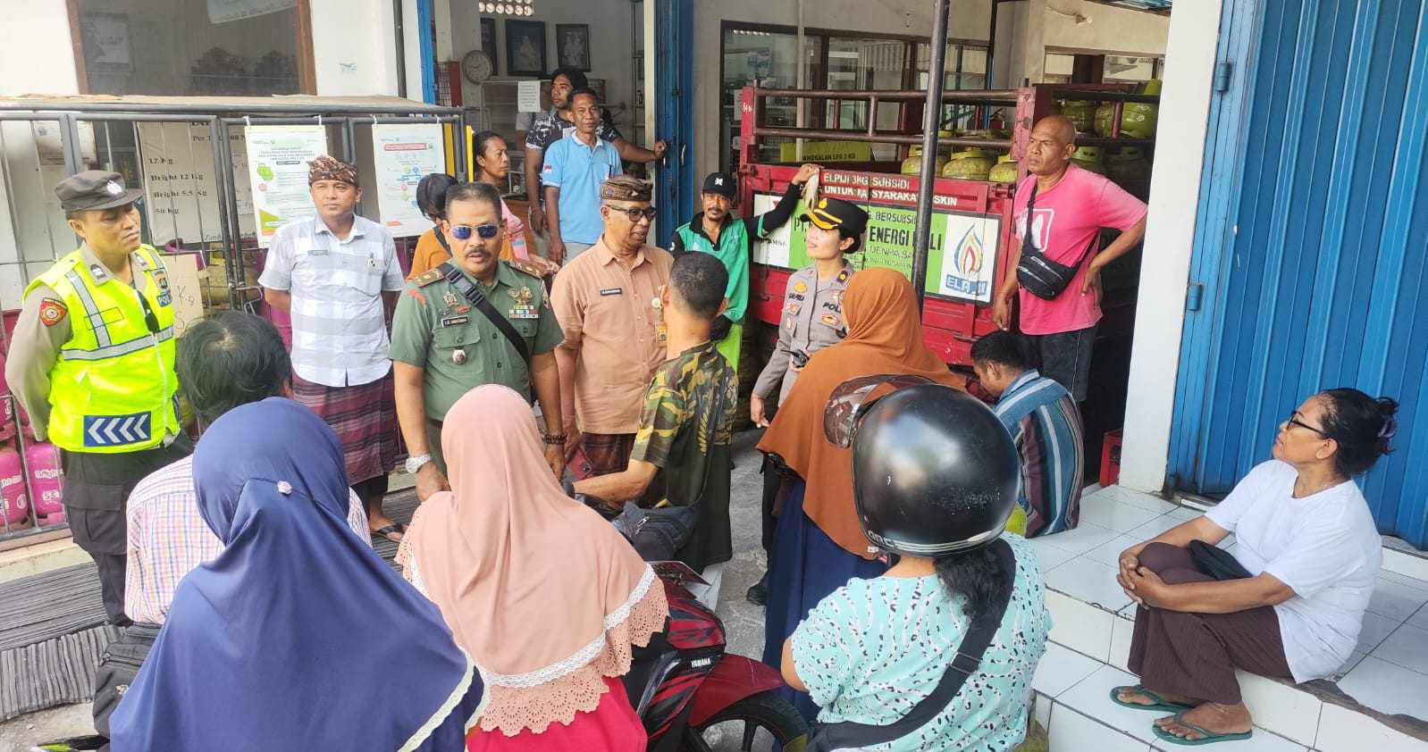 Keterangan foto; Kapolsek Densel Bersama Forkompincam Cek Ketersediaan LPG 3KG di Agen PT. Sari Kasih Utama Sesetan