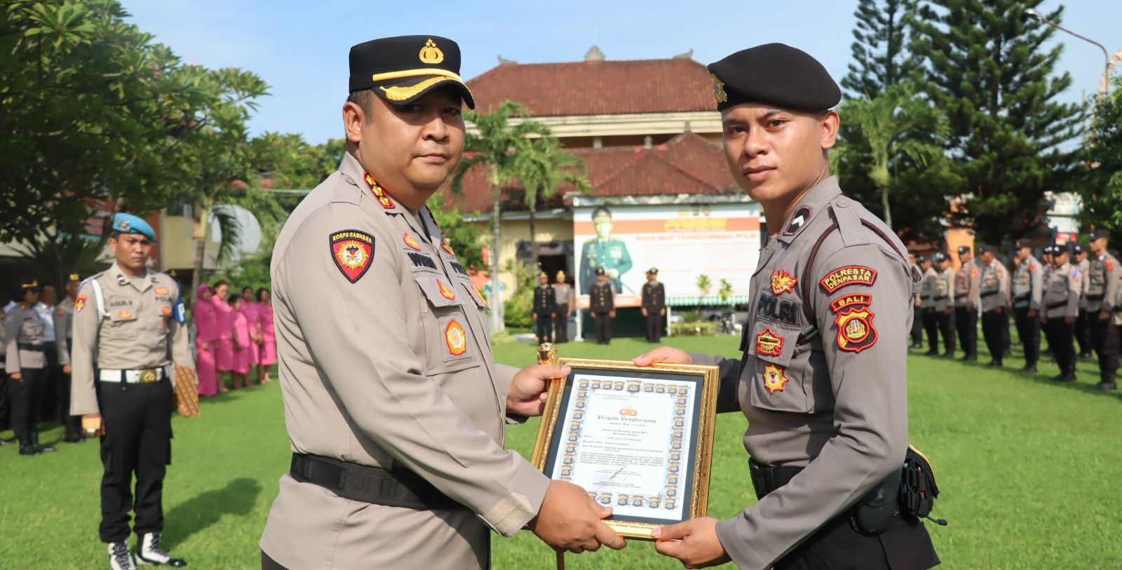 Upacara ini dipimpin oleh Inspektur Upacara, Kapolresta Denpasar, Kombes Pol. Wisnu Prabowo, S.I.K., M.H., kegiatan ini yang mengangkat kehormatan, pengabdian, dan prestasi personel Polresta Denpasar.