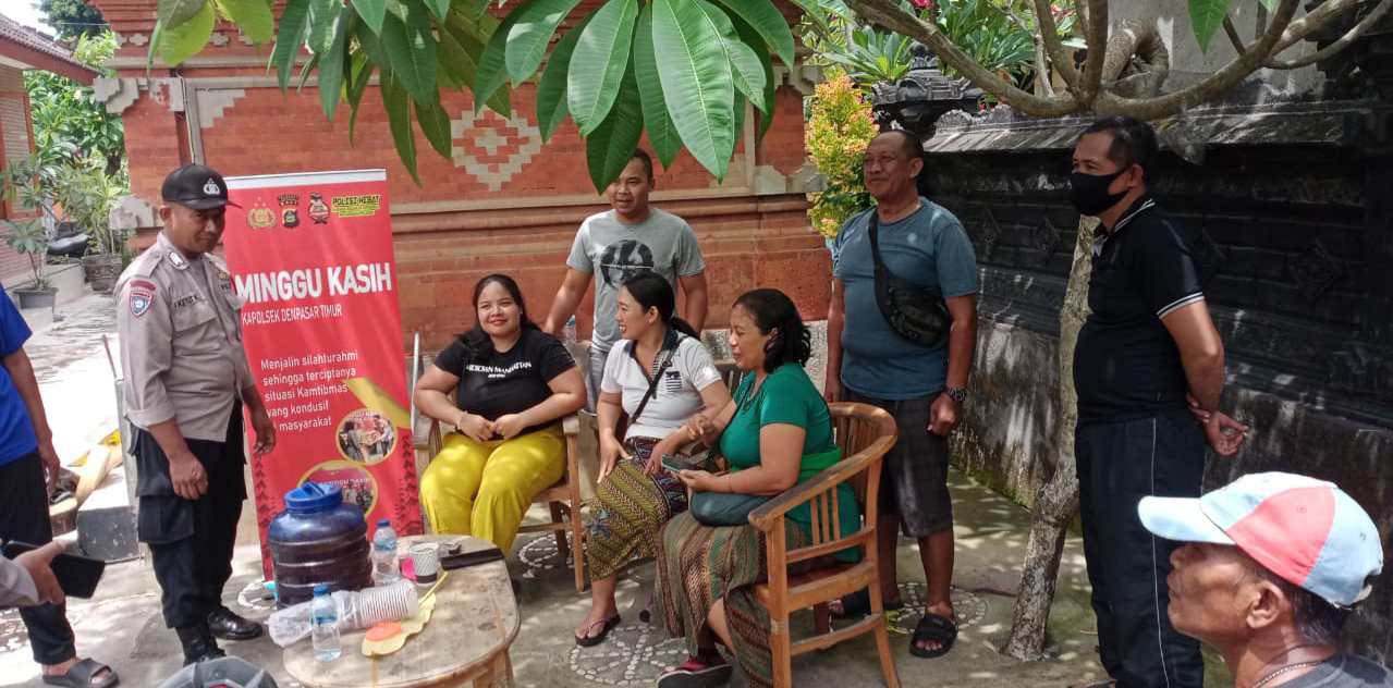 BALI – DETEKSIPOST.COM – Dalam rangka menjalin hubungan yang baik dan mempererat Silaturahmi dengan masyarakat serta membangun fondasi yang kuat untuk menciptakan lingkungan yang aman dan nyaman bagi warga masyarakat, Polsek Denpasar Timur (Dentim) yang diwakili oleh Bhabinkamtibmas Desa Kesiman Petilan Bripka I Ketut Kariawan menggelar kegiatan Minggu Kasih, yang bertempat di sebuah rumah warga bernama Ibu Desca, Jln Sulatri Gg. IV, Banjar Batan Buah, Desa Kesiman Petilan, Denpasar Timur, Minggu (24/03/2024) pukul 09.00 wita.