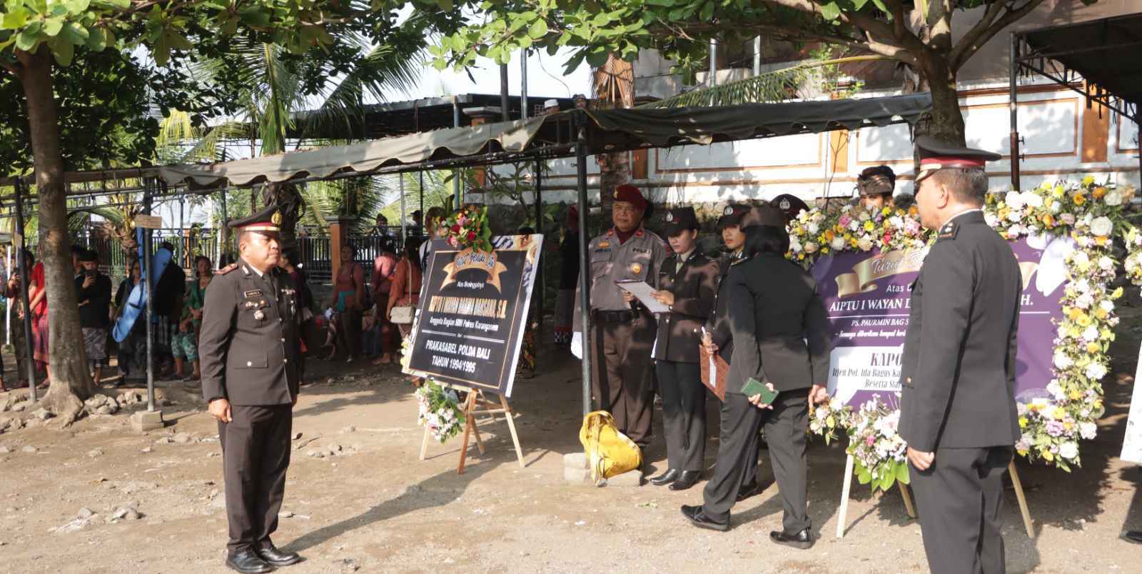 Bertindak selaku Inspektur Upacara Kabag SDM Polres Karangasem Kompol I Nyoman Merta Kariana, S.H.,M.H., Perwira Upacara Kapolsek Dawan Akp I Komang Susiawan, Komandan Upacara Ipda I Wayan Cana Ariasa dan dihadiri Satu Pama Polres Karangasem, Satu Peleton Bintara Polres Klungkung bersenjata, Satu Regu Bintara Polres tanpa senjata, Perwakilan PNS Polres Klungkung , Satu Regu Bhayangkari.