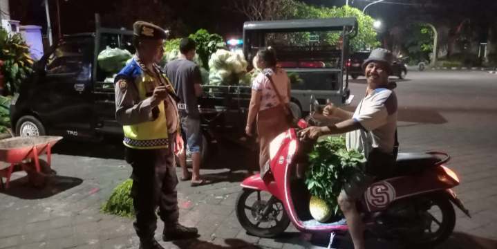 Keterangan foto; Blue Light Patrol Polsek Mengwi Sambangi Pasar Adat Mengwi