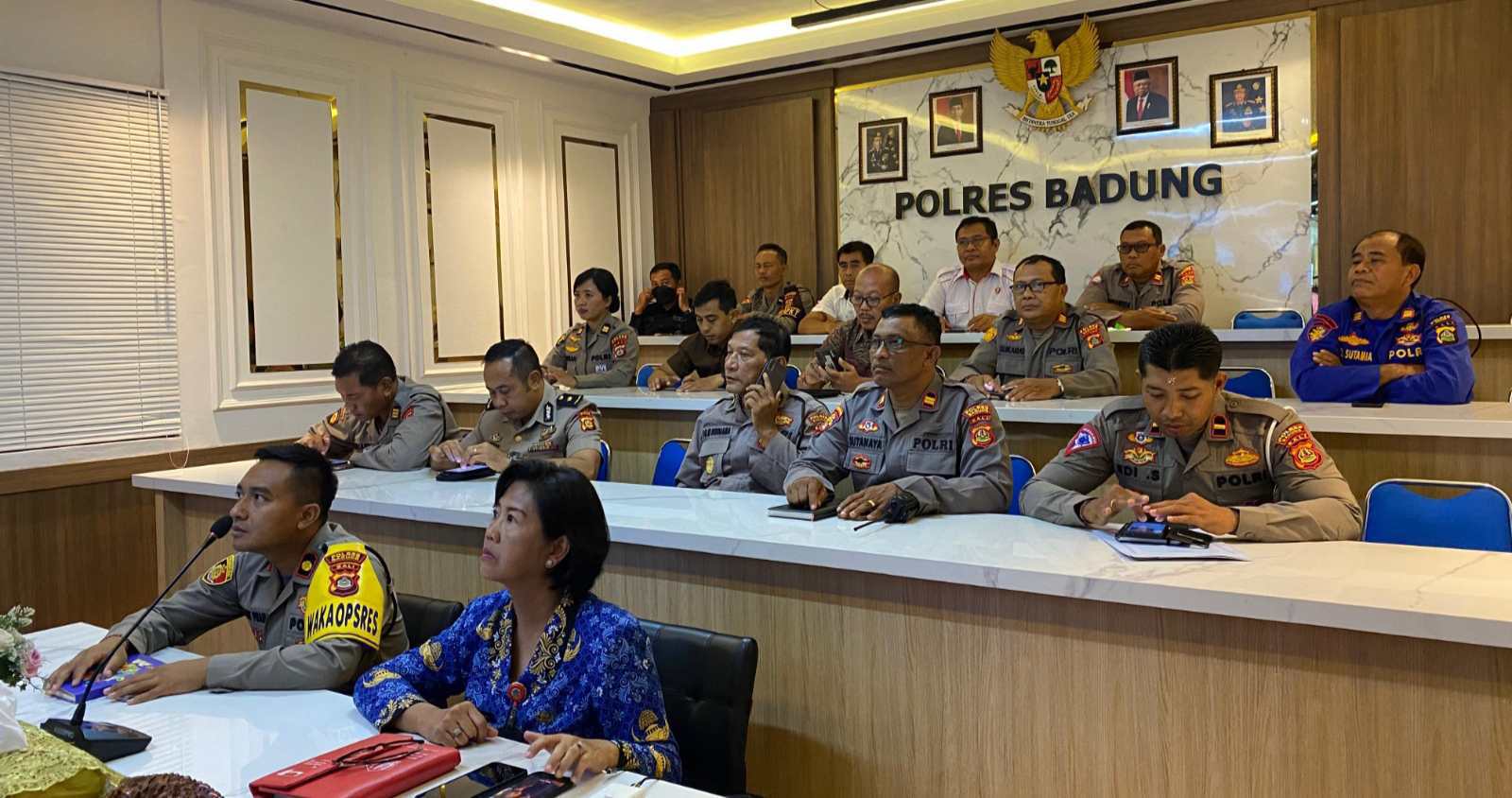 BALI – DETEKSIPOST.COM – Mangupura – Wakil Kepala Kepolisian Resor Badung Kompol I Made Pramasetia, SH. SIK. MH. Didampingi Plt. Sekdis Pertanian dan Pangan Kabupaten Badung DR. Ir. Ni Luh Wayan Suparmi, M.Ma, dan Para PJU Polres Badung, mengikuti zoom Meeting dalam rangka Penandatanganan Nota Kesepahaman Kementerian Pertanian dengan Kepolisian Negara Republik Indonesia, bertempat di ruang Command Center Polres Badung, Jl. KeboIwa No. 1 Mengwitani Kecamatan Mengwi Kabupaten Badung, Bali, Kamis, (25/4/2024) siang pukul 12.10 WITA