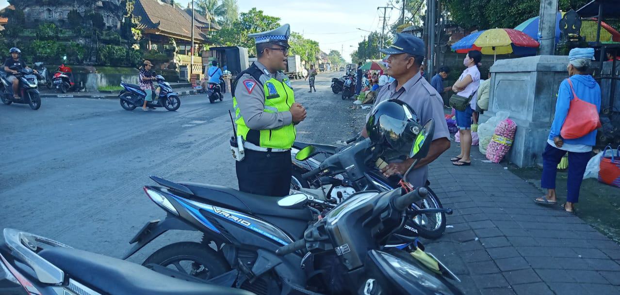 Personil Unit Lantas Polsek Abiansemal Himbau Juru Parkir, Harap Waspada Curanmor