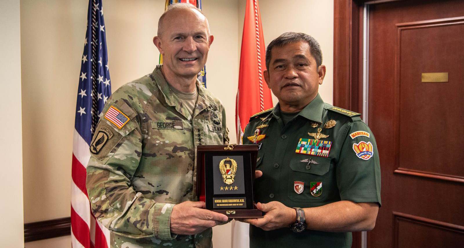 DETEKSIPOST.COM – Virginia, USA, tniad.mil.id – Guna memperkuat kerja sama militer antara TNI AD dan US Army, Kepala Staf Angkatan Darat (Kasad) Jenderal TNI Maruli Simanjuntak M.Sc. mengunjungi _Chief of Staff of US Army_ (Kasad Amerika Serikat) General Randy A. George, bertempat di US Army HQ, Pentagon, Virginia, Amerika Serikat, Senin (20/5/2024).