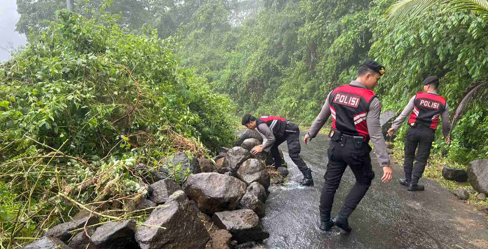 Kapolres Klungkung AKBP Umar,S.I.K., M.H., melalui Kasi Humas Iptu Agus Widiono mengungkapkan bahwa Polres Klungkung telah menerjunkan Personel untuk mendatangi lokasi tanah longsor di Wilayah Kecamatan Dawan tepatnya di Bukit Abah Desa Besan dan juga membersihkan material longsor.