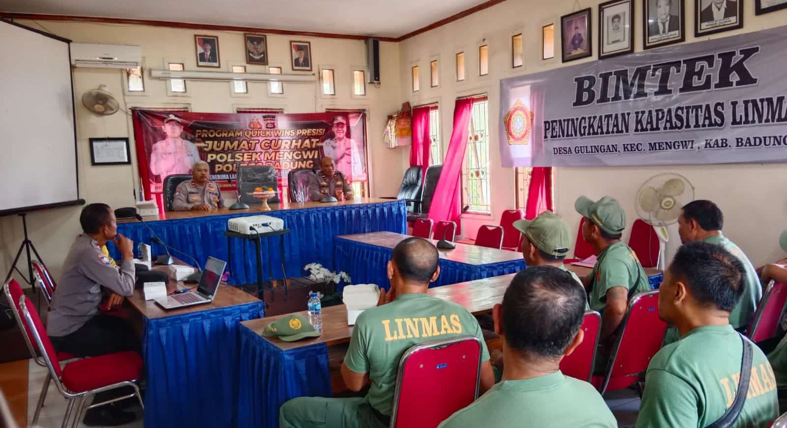 BALI – DETEKSIPOST.COM – MENGWI – Polsek Mengwi melaksanakan kegiatan Jumat Curhat bersama anggora Linmas Desa Gulingan, kegiatan dilaksanakan di ruang rapat Kantor Desa Gulingan, Kecamatan Mengwi, Kabupaten Badung, Bali. Jumat (14/6/2024) pukul 09.00 wita