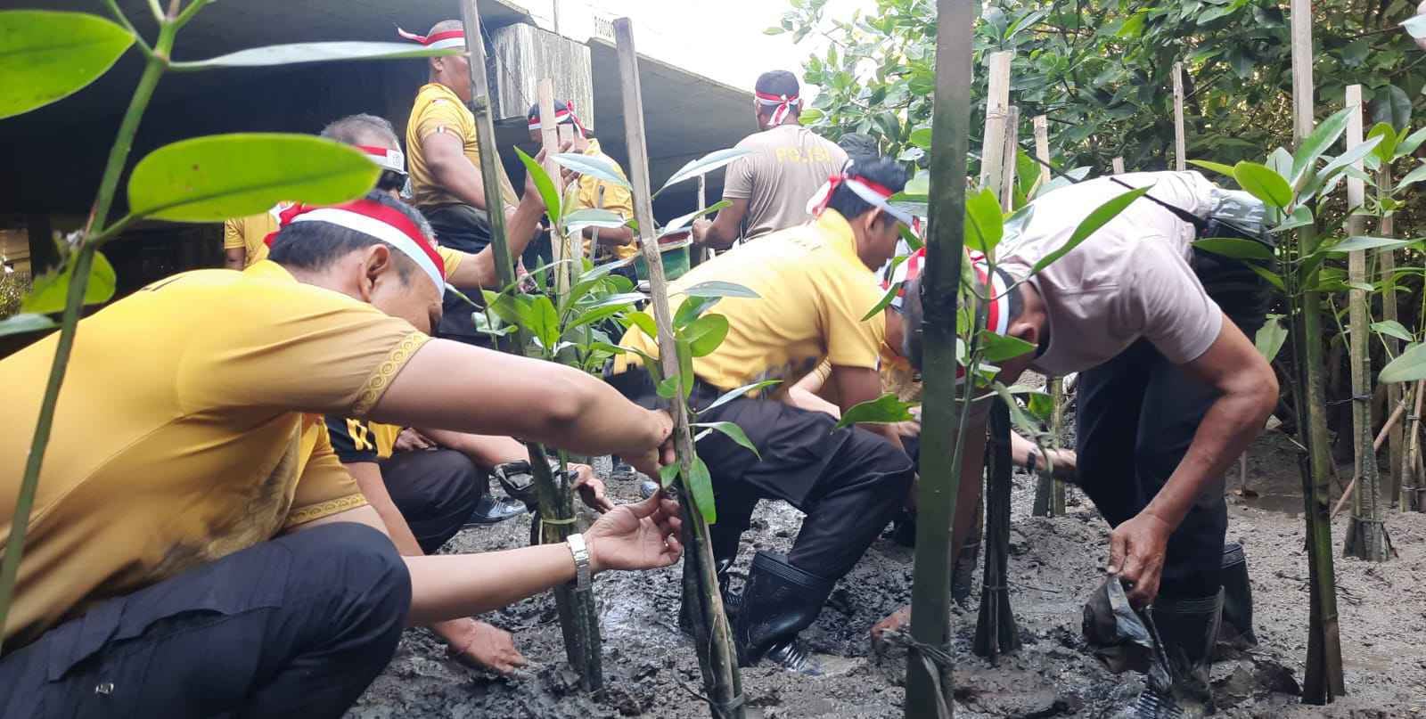Keterangan foto; Menyambut Hari Bhayangkara Ke 78 Polsek Kuta Laksanakan Penanaman Pohon Bakau