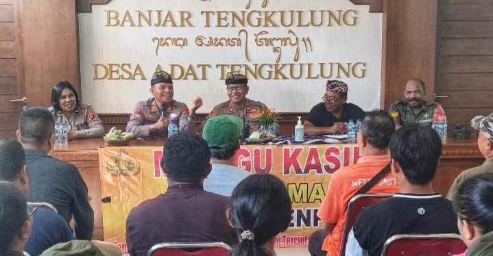 Acara ini dibuka dengan sambutan dari Kelihan Banjar Adat Tengkulung, Made Nalu, yang menyampaikan terima kasih kepada Polresta Denpasar atas perhatian dan kesediaannya untuk hadir di Banjar Tengkulung. Kapolsek Kuta Selatan, Kompol I Gusti Ngurah Yudistira, S. H, M. H., dalam sambutannya mengapresiasi situasi Kamtibmas yang aman di Banjar Tengkulung dan mendorong warga untuk terus menjaga kondusifitas wilayah.
