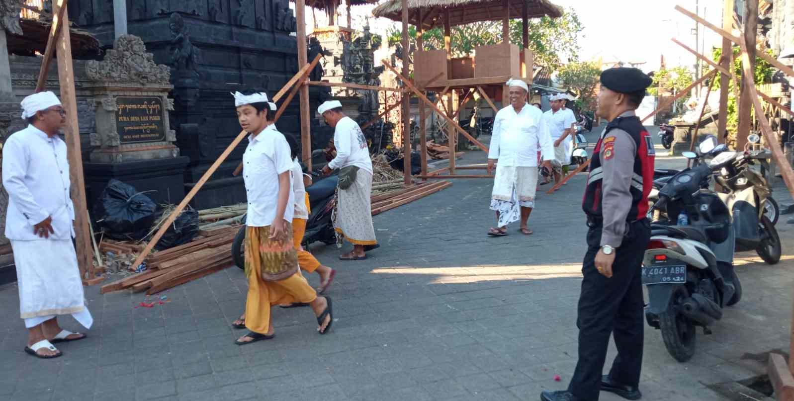 Keterangan foto; Sat Samapta Polres Badung Beri Rasa Aman Masyarakat Melakukan Persembahyangan Hari Raya Pagerwesi.