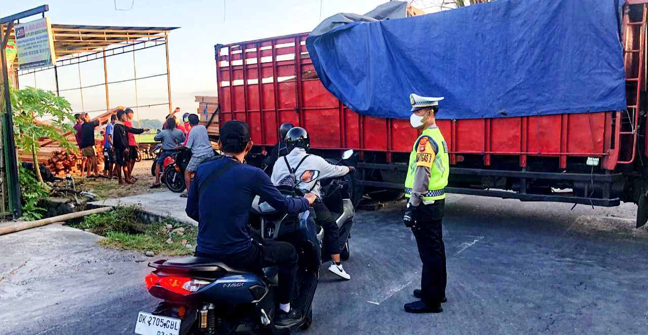 Truck tronton warna merah P 8626 VL yang dikemudikan oleh Muhammad Fu’ad warga Kabupaten Jembrana, dengan sarat muatan kayu tersebut mengalami mogok melintang akibat jebolnya trotoar dilokasi, sontak kejadian tersebut membuat arus lalu lintas tersendat.