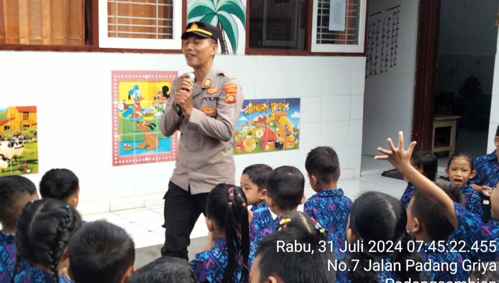 Seperti halnya yang dilakukan oleh Kanit Binmas AKP I Wayan Budiartana, S. H., dan Bhabinkamtibmas Aiptu Made Merta, melaksanakan Program Polisi Sahabat Anak dengan menggunakan pendekatan Holistik Integratif yang merupakan penanganan anak usia dini melalui pendidikan dan pengasuhan serta perlindungan untuk mengoptimalkan semua aspek perkembangan anak usia dini, bertempat di Taman Kanak-kanak (TK) Padang Griya Jl. Padang Griya No.7, Kelurahan Padangsambian Kecamatan Denpasar Barat. Rabu (31/7/2024) pagi.