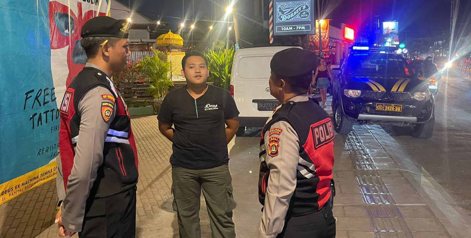 BALI – DETEKSIPOST.COM – KUTA UTARA – Kanit Samapta Polsek Kuta Utara Iptu I Gede Wirata beserta anggotanya melaksanakan Blue Light Patrol menggunakan kijang 943 Canggu di kawasan wisata simpang Deus jalan Batu Bolong, Desa Canggu, Kecamatan Kuta Utara, Kabupaten Badung. Senin (26/8) malam pukul 22.00 Wita.