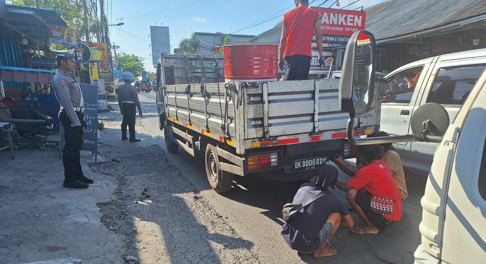 Truk Mogok Di Jalur Padat Personel Unit Lantas Polsek Kuta Utara Lakukan Pengaturan