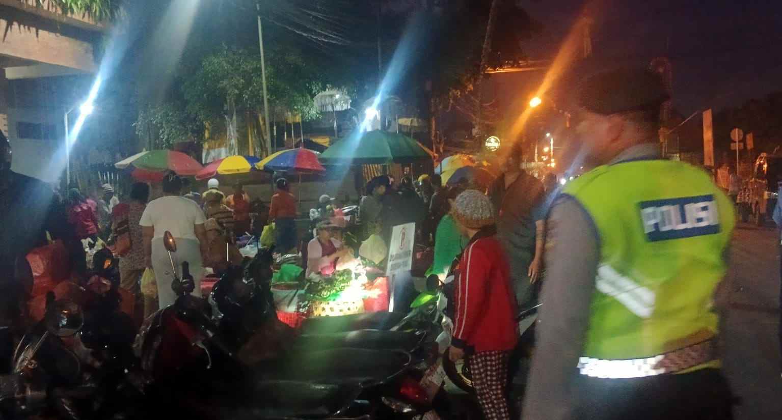 Keterangan foto; Menjelang Hari Raya Kuningan, Polsek Abiansemal Intensifkan Patroli Pasar Pagi