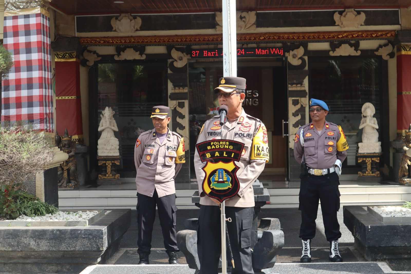 Dalam arahannya, AKBP Teguh Priyo Wasono menekankan pentingnya kesiapsiagaan seluruh personel Polres Badung dalam mengamankan setiap tahapan proses pergantian kepemimpinan nasional.