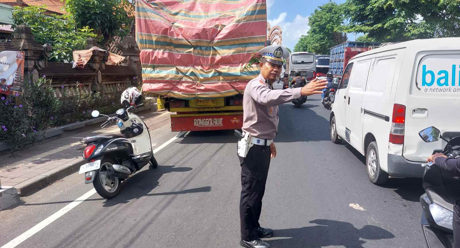 Dalam upaya memperlancar serta meminimalisir terjadinya kemacetan dan kecelakaan lalu lintas jajaran satuan lalu lintas melaksanakan kegiatan pengaturan dan penjagaan disekitar lokasi kendaraan yang mogok tersebut. Dimpin langsung oleh Kanit Turjagwali Ipda Made Mahendra Yasa, S.H, serta Kanit Kamsel Aiptu I Putu Ariasa, SH. dan juga anggota BM 05 Bripka I Nyoman Suparta,S.M., langsung melakukan pengamanan dan pengaturan arus lalu lintas yang nampak sangat padat.