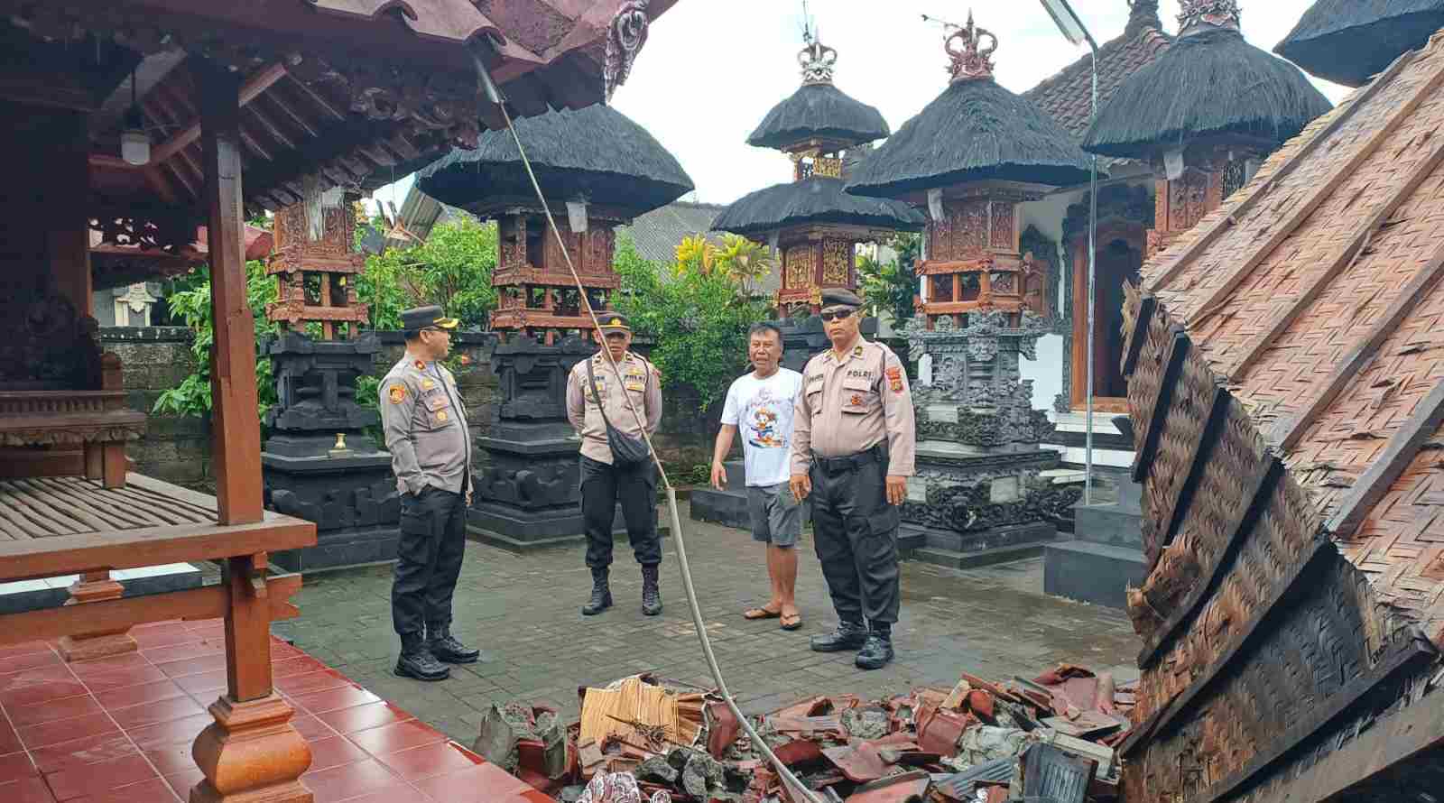 Kapolsek Mengwi Kompol I Ketut Adnyana T.J seijin Kapolres Badung AKBP Teguh Priyo Wasono, S.I.K., mengatakan tadi malam (30/10/2024) wilayah hukum Polsek Mengwi diguyur hujan lebat diserta angin kencang yang menyebabkan warga lingkungan Banjar Ubung dan Uma Gunung Kelurahan Sempidi terdampak bancana alam yang mengakibatkan robohnya bangunan tempat suci (sanggah), tembok penyengkar, kanopi dan atap rumah