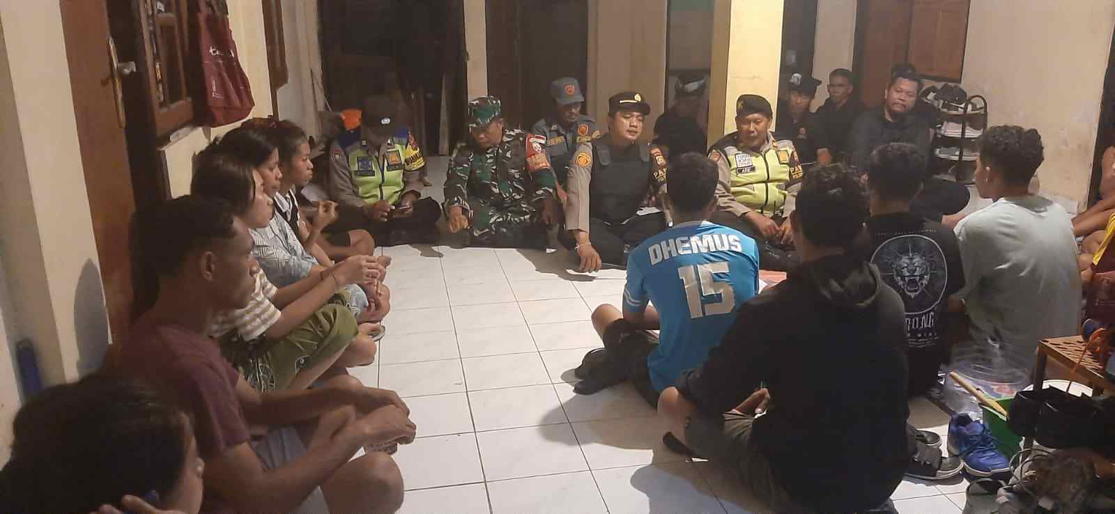 Dengan dihadiri oleh warga pendatang dari Provinsi Nusa Tenggara Timur (NTT) sekitar 25 warga pendatang, Dalam kegiatan tersebut, petugas juga mengingatkan warga pendatang untuk saling mengingatkan dan berkomitmen menjaga situasi kondusif di lingkungan mereka.