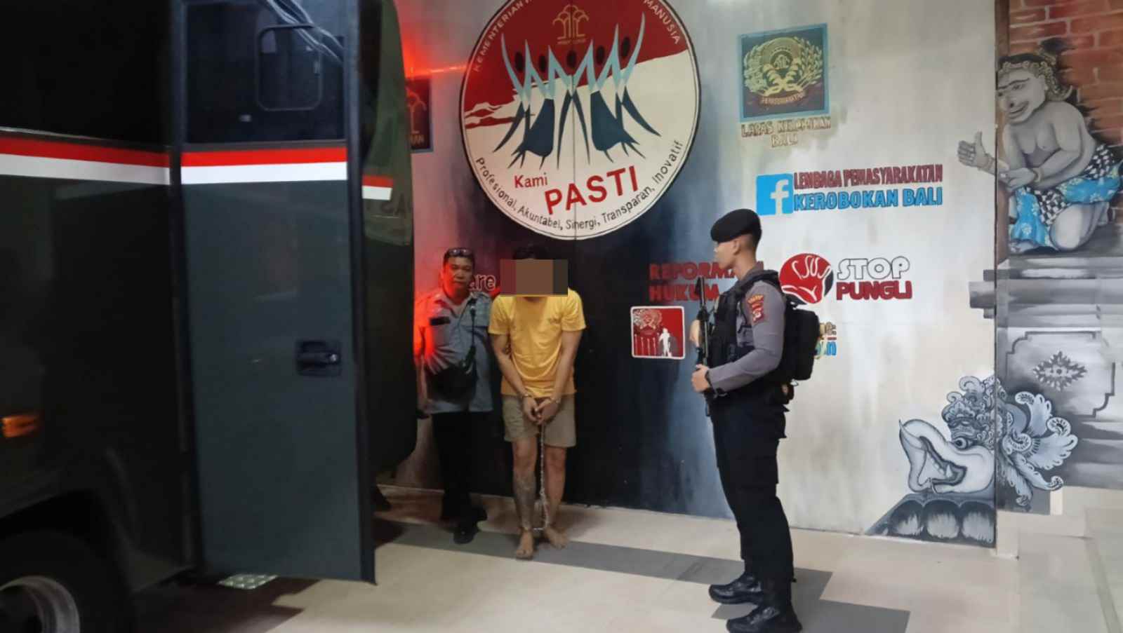 Keterangan; Personel Sat Samapta Polres Badung Laksanakan Pengawalan Tahanan dengan Ketat