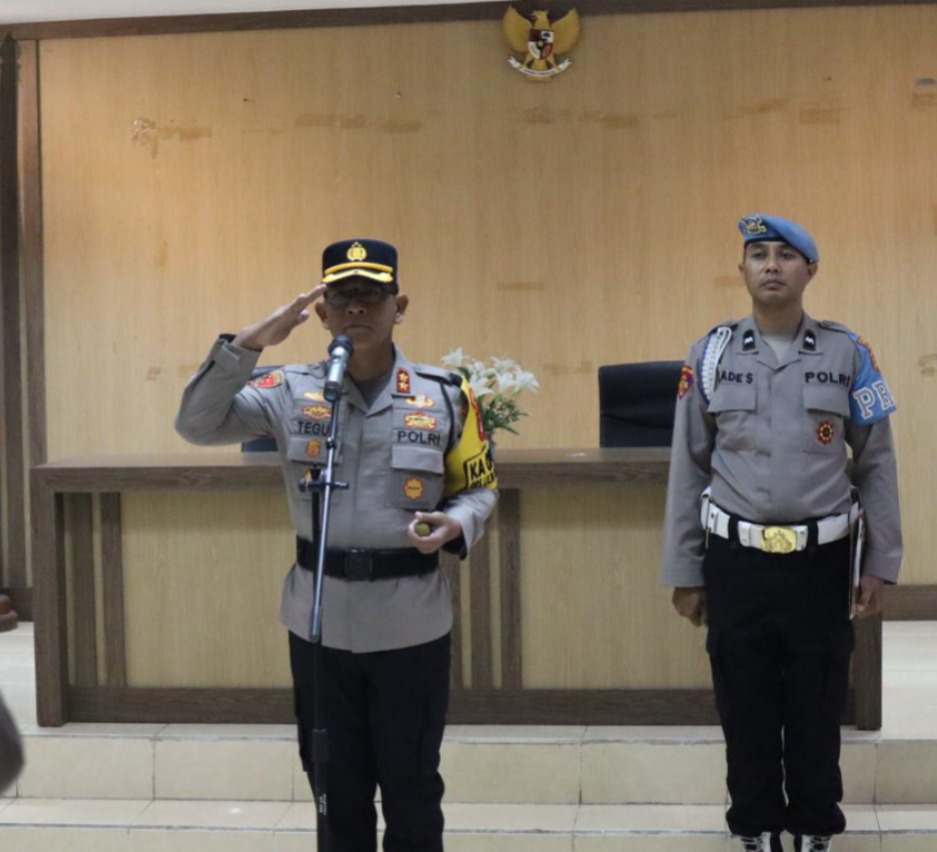 “Apel kesiapan ini merupakan bentuk komitmen tugas untuk mengecek kesiapan personel maupun sarpras dalam rangka pengamanan Perayaan Natal 2024 Dan Tahun Baru 2025, sehingga seluruhnya dapat berjalan dengan aman, tertib, dan lancar serta tidak lupa untuk selalu mengucapkan Puji Syukur Ke Hadirat Tuhan Yang Maha Esa karena kita masih diberikan kesehatan sampai saat ini.” Ucap Kapolres AKBP Teguh mengawali arahannya.