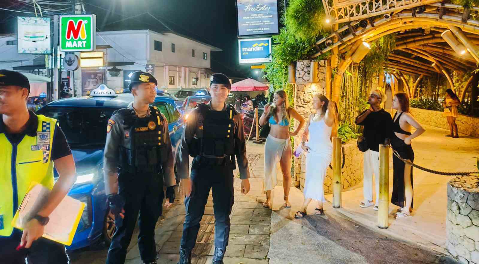 Keterangan; Patroli Unit Raimas Polres Badung Kunjungi Finns Beach Club