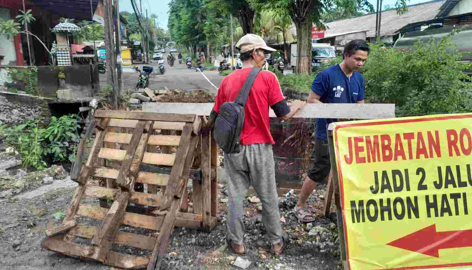 Jembatan tersebut diketahui ambruk pada Senin (30/12/2024) sekitar pukul 10.00 WITA. Untuk mencegah terjadinya kecelakaan, Aiptu I Nengah Bagiarta, bekerja sama dengan staf toko bangunan Mitra Jaya, atas nama Komang, telah memasang tali rafia sebagai pembatas sementara. Langkah ini diambil untuk memberikan peringatan kepada pengendara, terutama di malam hari saat kondisi jalan minim pencahayaan.