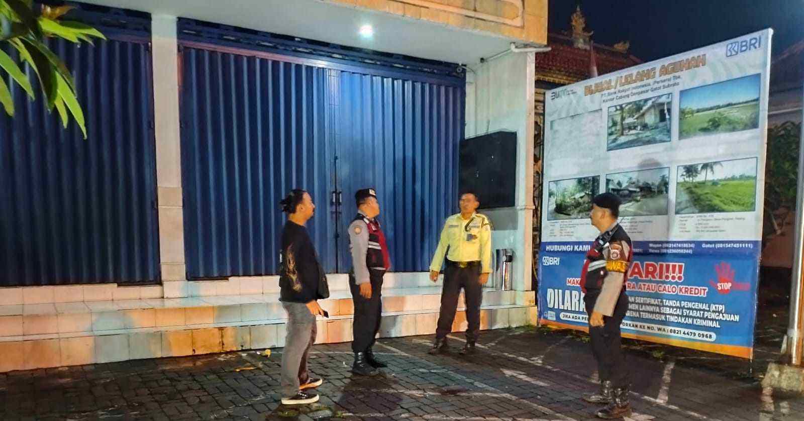 Bali – deteksipost.com – Abiansemal – Dalam rangka menjaga situasi keamanan dan ketertiban masyarakat (kamtibmas) di wilayah hukum Polsek Abiansemal, patroli Samapta terus meningkatkan kegiatan dialogis dengan masyarakat, termasuk para petugas keamanan. Dalam hal ini, anggota patroli menyambangi bank BRI Blahkiuh di wilayah desa Blahkiuh untuk berkoordinasi dan menjalin komunikasi dengan satpam yang bertugas. Minggu, (12/01) Pkl. 23.35 Wita.
