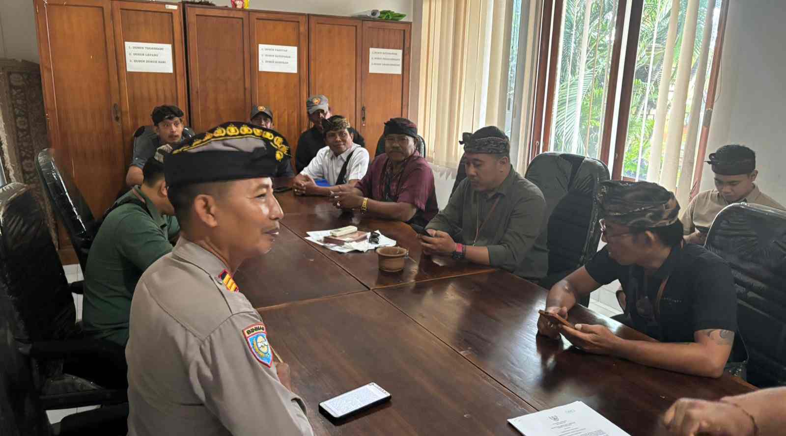 Keterangan; Sambang Kamtibmas Kanit Binmas Polsek Denpasar Barat Berikan Himbauan Kepada Perangkat Desa Padangsambian Kaja