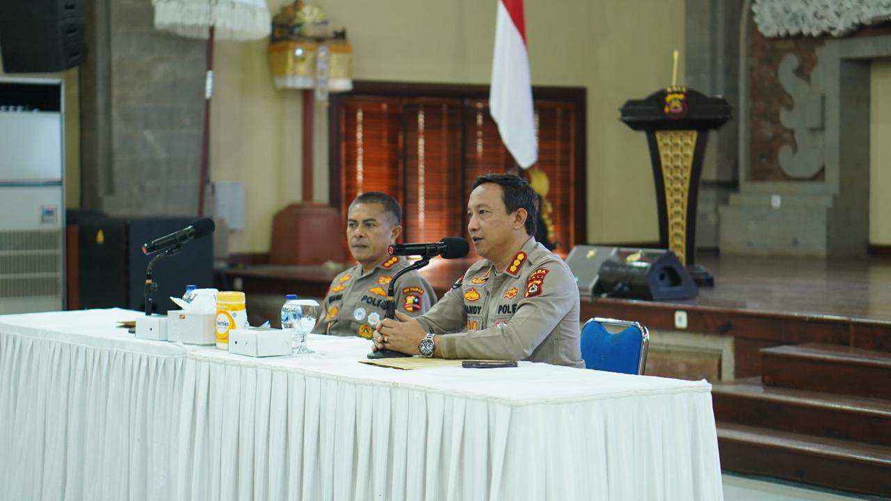 Keterangan; Kabid Humas Polda Bali Kombes. Pol. Ariasandhy, S.I.K., dengan dihadiri oleh seluruh Kasi Humas Polres