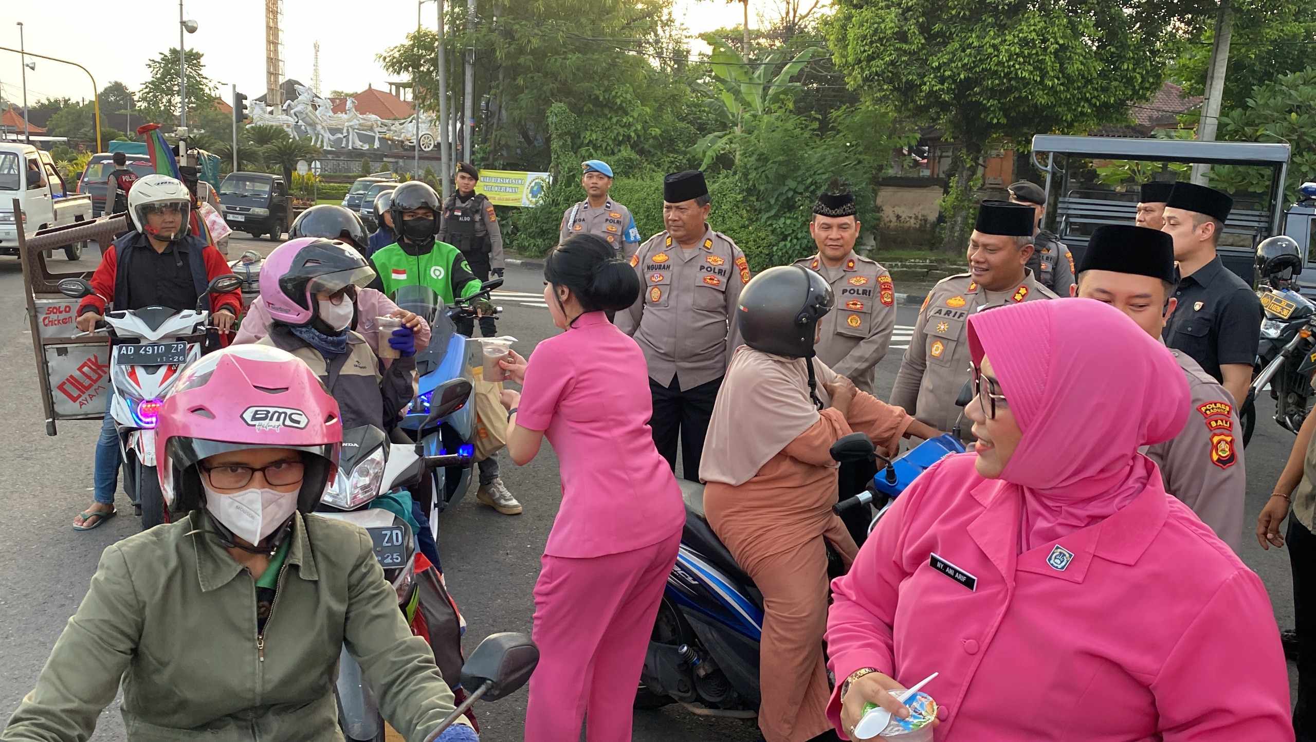 Keterangan; Polri Untuk Masyarakat, Kapolres Badung Bagikan Takjil Bersama Bhayangkari