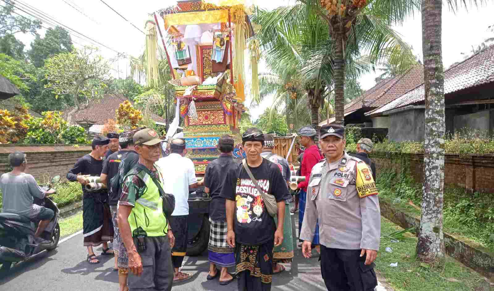 Pengamanan ini dilakukan guna memastikan prosesi adat berjalan lancar dan tertib, mengingat upacara Ngaben melibatkan banyak warga serta arak-arakan yang melintasi jalan utama.