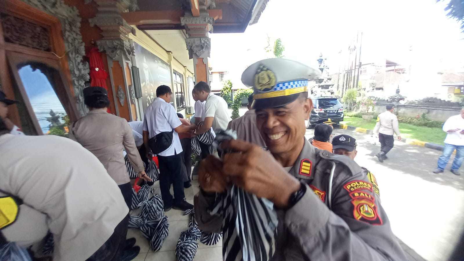 Keterangan; Sambut Hari Raya Galungan Kapolsek Mengwi Bagikan Daging Ayam Kepada Anggota