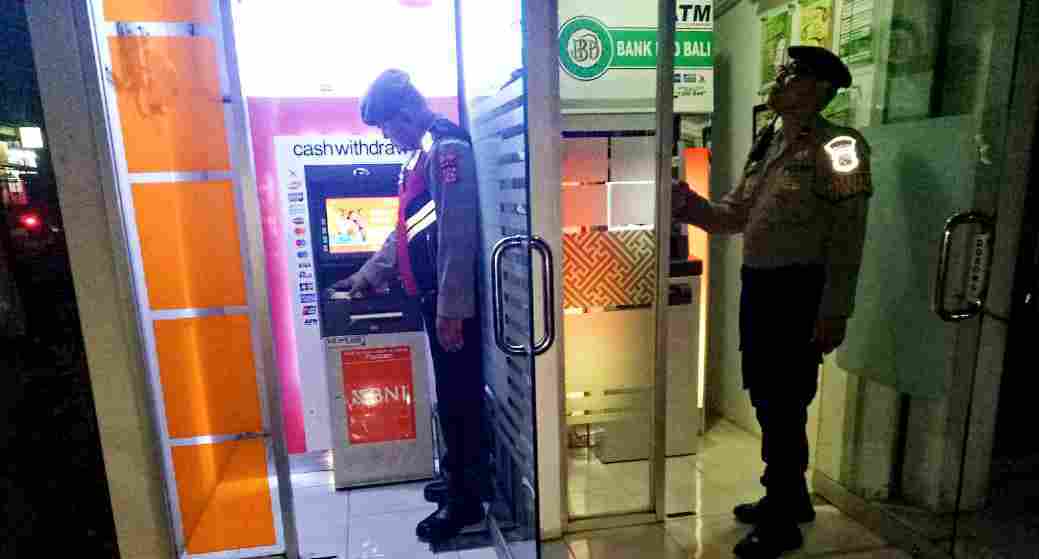 Dalam patroli tersebut, tampak dua personel berseragam lengkap melakukan pengecekan di sekitar mesin ATM Bank BNI dan Bank BPD Bali. Kegiatan ini bertujuan untuk mengantisipasi tindak kriminalitas seperti skimming, pembobolan ATM, serta memberikan rasa aman bagi masyarakat yang bertransaksi di malam hari.