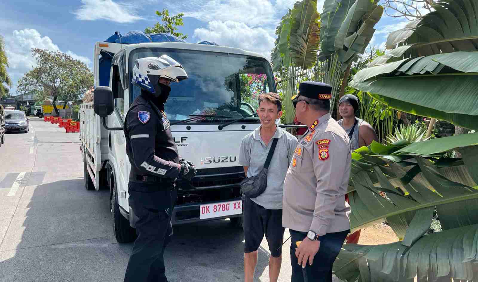 Tampak Kapolres Badung AKBP M. Arif Batubara, SH., SIK., MH., M.Tr.Opsla turun langsung kelapangan ikut melakukan penertiban di sepanjang jalur Terminal Mengwi Desa Mengwitani Kecamatan Mengwi Kabupaten Badung, Bali. Selasa (06/05). sore pukul 17.00 Wita, dan menemukan pelanggaran larangan parkir disepanjang jalur tersebut yang dilakukan oleh para sopir kendaraan barang / truck.