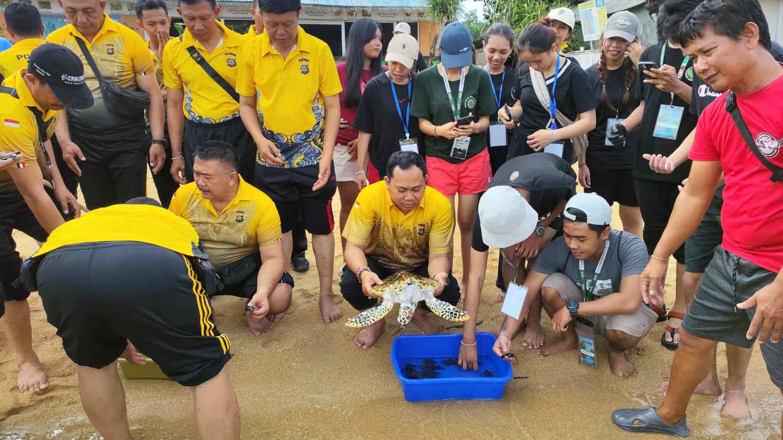 “Saya mengucapkan terima kasih kepada Kelompok Pelestarian Penyu dan Mangrove serta rekan-rekan yang telah hadir. Kegiatan ini merupakan komitmen kita bersama untuk menjaga kelestarian lingkungan pesisir, melalui aksi bersih-bersih pantai, penanaman mangrove, dan pelepasan tukik ke habitat aslinya,” ungkap AKP I Komang Agus D.W., S.I.K., M.Si.