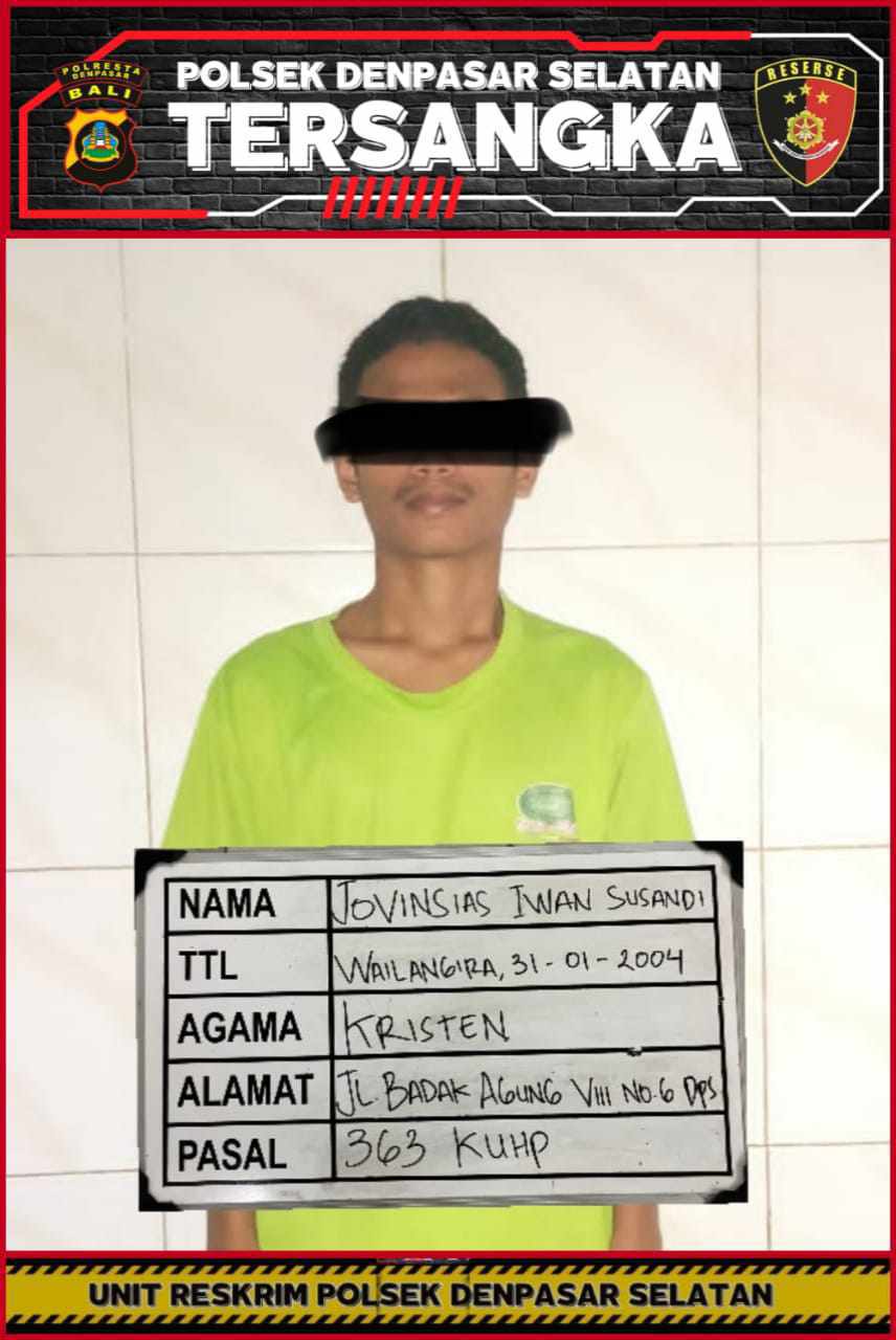 Kapolsek Denpasar Selatan AKP Agus Adi Apriyoga, S.I.K., M.H., melalui Kanit Reskrim IPTU Nur Habib Aulya, S.Tr.K., S.I.K., M.H., menyampaikan bahwa penangkapan dilakukan oleh tim opsnal yang dipimpin Panit 2 Opsnal IPTU I Ketut Rudana.